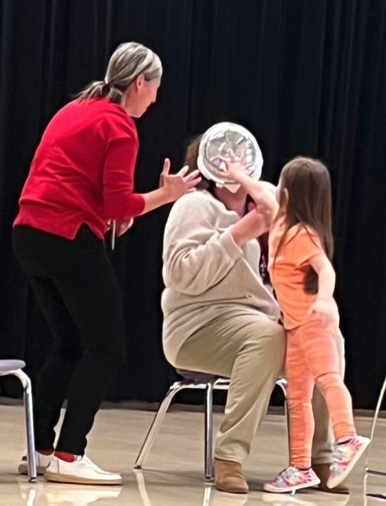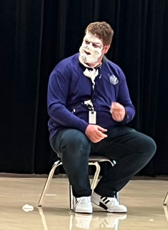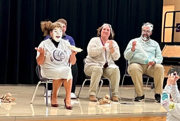 Central Elementary student council held a CHANGE WAR to support our Project Safe Food Pantry and Clothing Cupboard. The teacher that earned the most money WON a pie in the face.