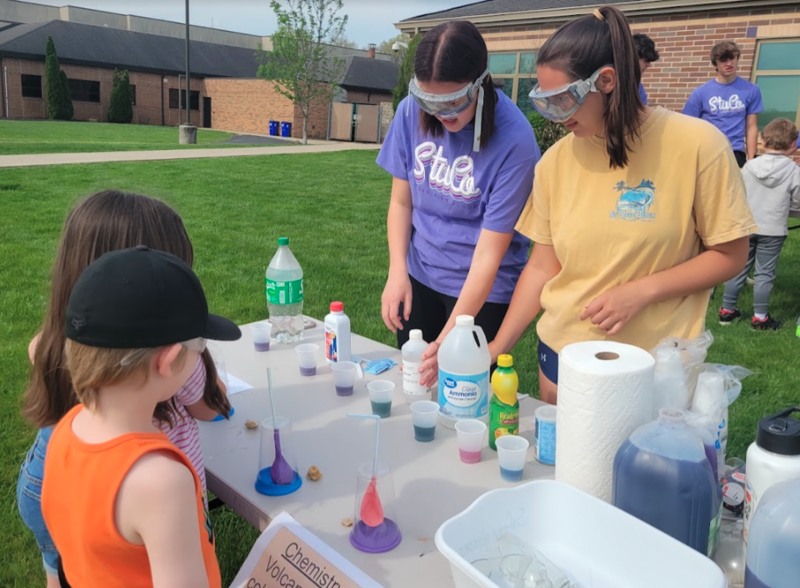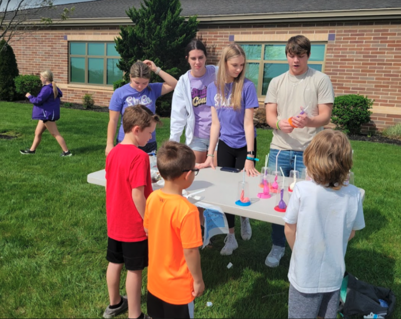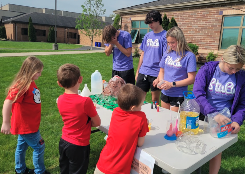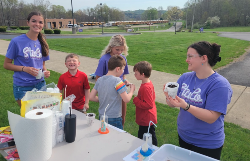 Student Council members at Logan High School planned a Science Day at Green Elementary School. The first graders had a blast learning about the earth, density, chemical reactions, and how our lungs work. They ate dirt pudding cups that modeled soil layers, smashed geodes open, guessed if items would sink or float in a water tank, saw color-changing chemical reactions, and more. Student Council members have been planning this event for months staying after school to prep all of the materials for each station. The event was as rewarding for our high school students as it was for the first graders at Green Elementary School.