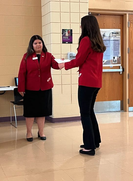 The Paulette Farago Honorary Scholarship is granted to a member who exemplifies dedication to Ohio FCCLA through outstanding leadership activities. This year, this scholarship was awarded on stage at the Ohio FCCLA State Leadership Conference to Olivia Rayburn.