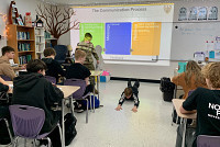 In preparation for the "In Times of War unit", Sergeant Thomas McLaughlin of the Army National Guard in Columbus came and spoke to 8th grade ELA classes about conflict management, effective listening, and resiliency from the perspective of the military. These foundational concepts show students how conflicts begin from similar places whether they are individual or international. Sergeant McLaughin is a 2012 Nelsonville-York graduate and was deployed in Kuwait and Iraq from 2019-2020. He now works at the Defense Supply Center in Columbus as a leadership trainer while finishing his IT degree.