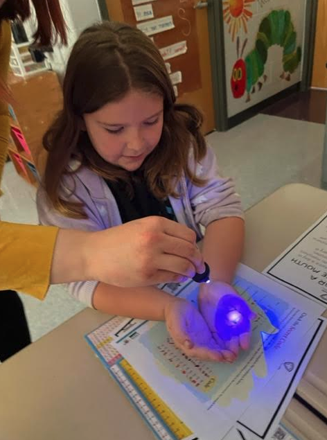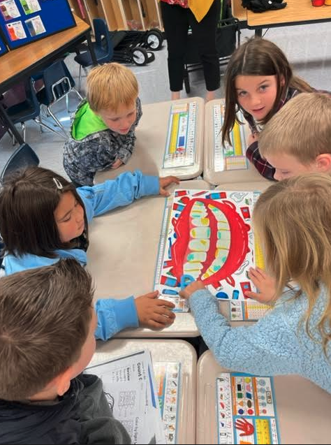 First Grade partnered with the Health Department, who came to teach about healthy habits. We learned how many sugar cubes are in our favorite foods and drinks. We did fun hands-on lessons for brushing our teeth and washing our hands! All students got a new backpack full of goodies!