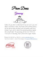 Project SAFE along with FCCLA are wanting to help LHS girls fulfill their dreams of attending prom. Please see updated attachments to see how you can sign up to attend the Prom Dress Giveaway and how you can help by donating new or gently used prom dresses.