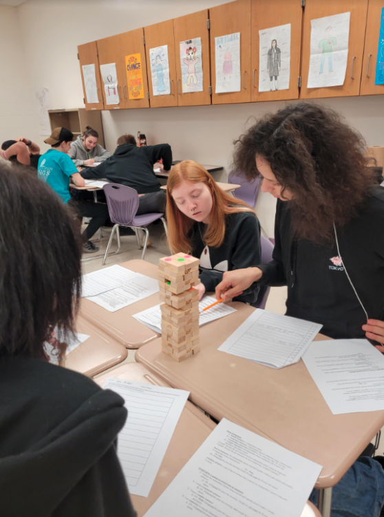Juniors in Mrs. Fackler's class used "Writing Jenga" to develop a collaborative writing piece.