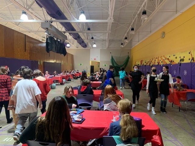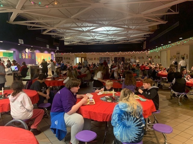 Middle school students had a magical holiday lunch on Thursday. Thank you to FCCLA students for hanging lights and serving students during each lunch and to 8th grade art students as well for decorating the cafeteria and upper gym for the celebration. As always, our cooks did an amazing job serving a delicious holidy meal and we appreciate them. The Grinch and Cindy Lou Who even made an appearance to pass out candy canes.