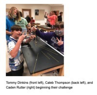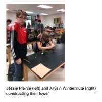 Today, Students in Mr. Reichling's Physical Science classes competed in the ‚ Marshmallow Challenge in which teams of students work to complete the tallest possible freestanding tower that will hold a marshmallow in the air using only 20 dry spaghetti noodles, a yard of tape, and a yard of string. This challenge may seem simple, but it forces students to collaborate with one another in a group setting very quickly since they have only 20 minutes to collaboratively design, plan, and execute their design. Many groups conquered the challenge today, here are a few pictures of the groups hard at work and our largest tower of the day at 0.92 meters created by Kaylie Haybron and Madison Mays! Congratulations to all of our students for taking on this challenge